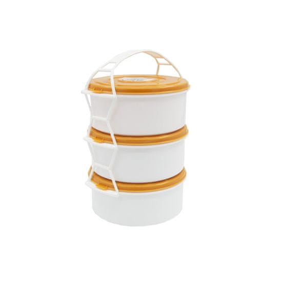 Kablica za shranjevanje in prevoz hrane, sestavljena iz 3 delov, ki so med seboj povezani z ročajem.