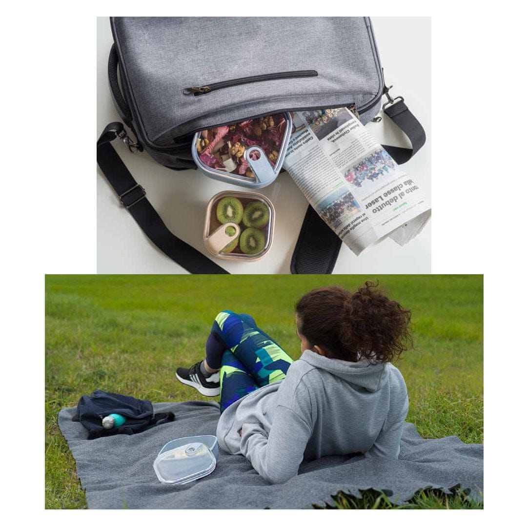 Inovativna in patentirana hermetična posoda Pull Box (12 × 12 cm) je idealna za shranjevanje, prenašanje in pogrevanje živil. Patentiran sistem zapiranja ohranja svežino in zrakotesnost živil, preprečuje kapljanje ter ohranja trdno zapiranje kljub padcu ali nagnjenosti posode. Prav zaradi tega je posoda Pull Box enostavna za prenašanje v vrečkah oz. nahrbtnikih, kjer ni mogoče zagotoviti vodoravnega položaja posode. Eleganten dizajn s prozorno posodo je zasnovan za vse, ki so organizirani in imajo radi vse pod nazorom. Kvadratna oblika omogoča zasedenje celotnega razpoložljivega prostora, prozoren pokrov pa olajša prepoznavanje hrane v notranjosti, brez odpiranja posode. Pull Box združuje estetiko in funkcionalnost. Hermetično posodo lahko odprete z eno potezo. V njej boste zlahka prenašali vaše najljubše prigrizke v službo, šolo, na telovadbo, trening, piknik ali sestanek, ne da bi se pri tem odrekli vašim prehranjevalnim navadam. V njej lahko prenašate juhe, golaže, solate, sadje, prigrizke … Posoda je izdelana iz termoplastičnega materiala, ki ga je mogoče 100% reciklirati. Lahko jo uporabite v mikrovalovni pečici (brez pokrova), hladilniku in pomivalnem stroju (na vrhnji košari).