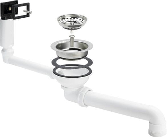Odtok/preliv – ni vključeno: Bowdenov mehanizem Oprema preliv, tesnilo preliva (primerno za ravne in zaobljene stene pomivalnega korita), odstranljivo cedilo iz nerjavečega jekla, odtočno koleno 90°, zgornji del ventila iz nerjavečega jekla model 7139. Celoten opis