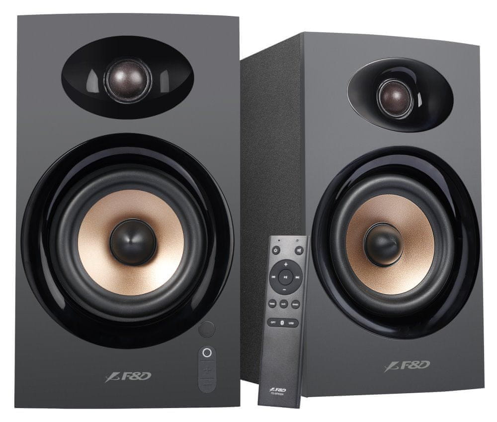 Fenda Zvočniki F&D R23BT/ 2.0/ 40 W/ leseni/ BT/ optični/ vhod USB/ daljinski upravljalnik/ črni