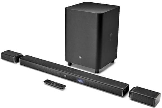 Zvočnik JBL Bar 5.1 ima poleg glavne vrstice še dva snemljiva brezžična prostorska zvočnika z 10-urnim časom delovanja, 510 W skupne moči, 250 mm brezžičnim nizkotoncemin in tremi vhodi HDMI za povezavo naprav 4K. Za češnjo na torti pa poskrbi brezžična povezava Bluetooth. Z Dolby® Digital, Dolby Pro Logic II in DTS bodo vaši filmi, glasba in video igre zveneli izvrstno.