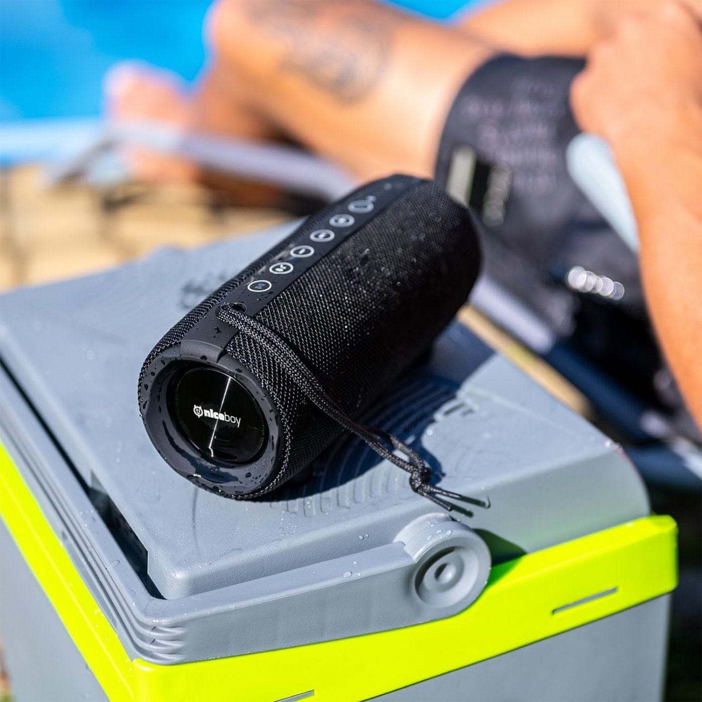 Zvočnik RAZE 3 Titan lahko prenese vse – bivanje na razgibanem terenu, jutranjo roso po zabavi in celo padec v bazen ali močan dež. Ker ima oznako IP67, je vodoodporen in odporen na prah iz okolja.