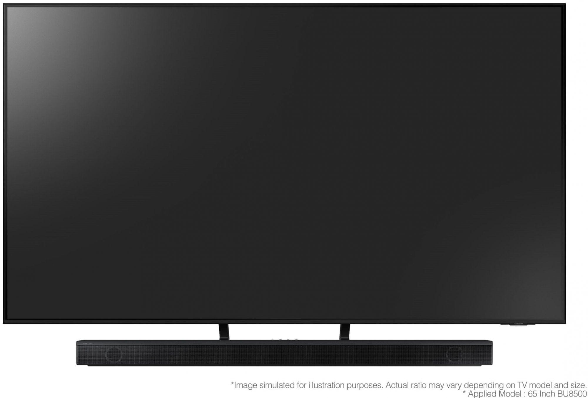 Soundbar s 20,32 cm (6,5") aktivnim brezžičnim nizkotoncem. Skupna zvočna moč 430 W, sestava kanalov 3.1, 7 zvočnikov, podpora za Dolby Digital/Digital Plus, DTS 5.1, DTS Virtual:X, načini zvoka, podpora za HDR, Bluetooth 4.2, Bluetooth Multi Connection. Povezljivost 2× HDMI 2.1 (ARC, CEC) (1× vhod, 1× izhod), digitalni optični zvočni vhod, vhod USB 2.0. V paketu je tudi stensko držalo. Celoten opis