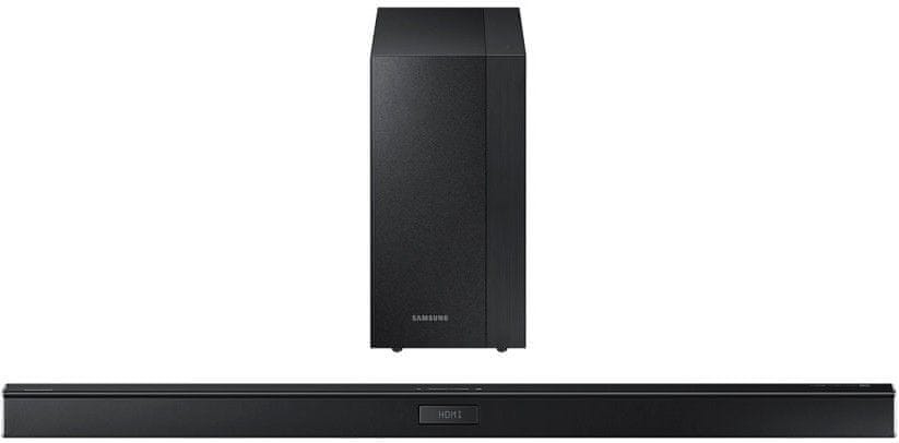 Brezžično povezovanjePovežite svoj televizor s Soundbarom preko Bluetooth funkcije TV Sound Connect. Povezovalni kabli med televizorjem in Soundbarom niso potrebni tako, da bo ozka in eleganta oblika obeh sistemov še dodatno zažarela. Vaš bivalni prostor pa bo ostal urejen. Televizor in Soundbar preprosto upravljate z enim samim daljinskim upravljalnikom. Z daljinskim upravljalnikom boste lahko nadzirali vklop, izklop in jakost zvoka na Soundbaru. Združljivo je le z izbranimi Samsung napravami. |