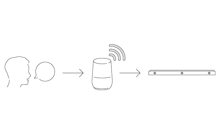 Zvočniški modul je združljiv z napravami, ki podpirajo Pomočnika Google in funkcijo Chromecast built-in™, ter napravami, ki podpirajo storitev Amazon Alexa. Dodajte HT-A5000 z aplikacijo Google Home in z glasovnimi ukazi predvajajte glasbo, spreminjajte glasnost ali uporabite druge funkcije.