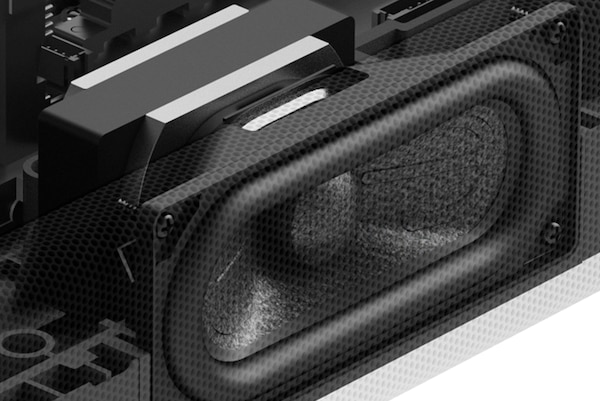 Navzgor usmerjeni zvočniki, vgrajena globokotonca in sprednji zvočnik z enoto X-Balanced Speaker Unit. Edinstvena pravokotna oblika zvočnikov izboljša območje membrane za jasnejše nizke tone. Zmanjša še neželeno premikanje zvočniške enote, ne da bi se spremenil zvočni tlak, zato je manj popačenja, vokali pa so čistejši.