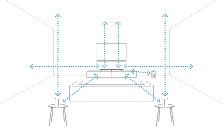 Naša revolucionarna tehnologija 360 Spatial Sound Mapping s Sonyjevimi zadnjimi zvočniki ustvari več navideznih zvočnikov iz zgolj zvočniškega modula in zadnjih zvočnikov. Z več navideznimi zvočniki, ki so razporejeni okoli vas v optimalnem zvočnem polju vašega prostora, je zagotovljeno povsem novo doživetje zvoka. Doživite vso napetost zvoka Dolby Atmos® in DTS:X® ter prisluhnite vsakemu dihu in koraku ter vsaki besedi, kot bi bili sredi filma.