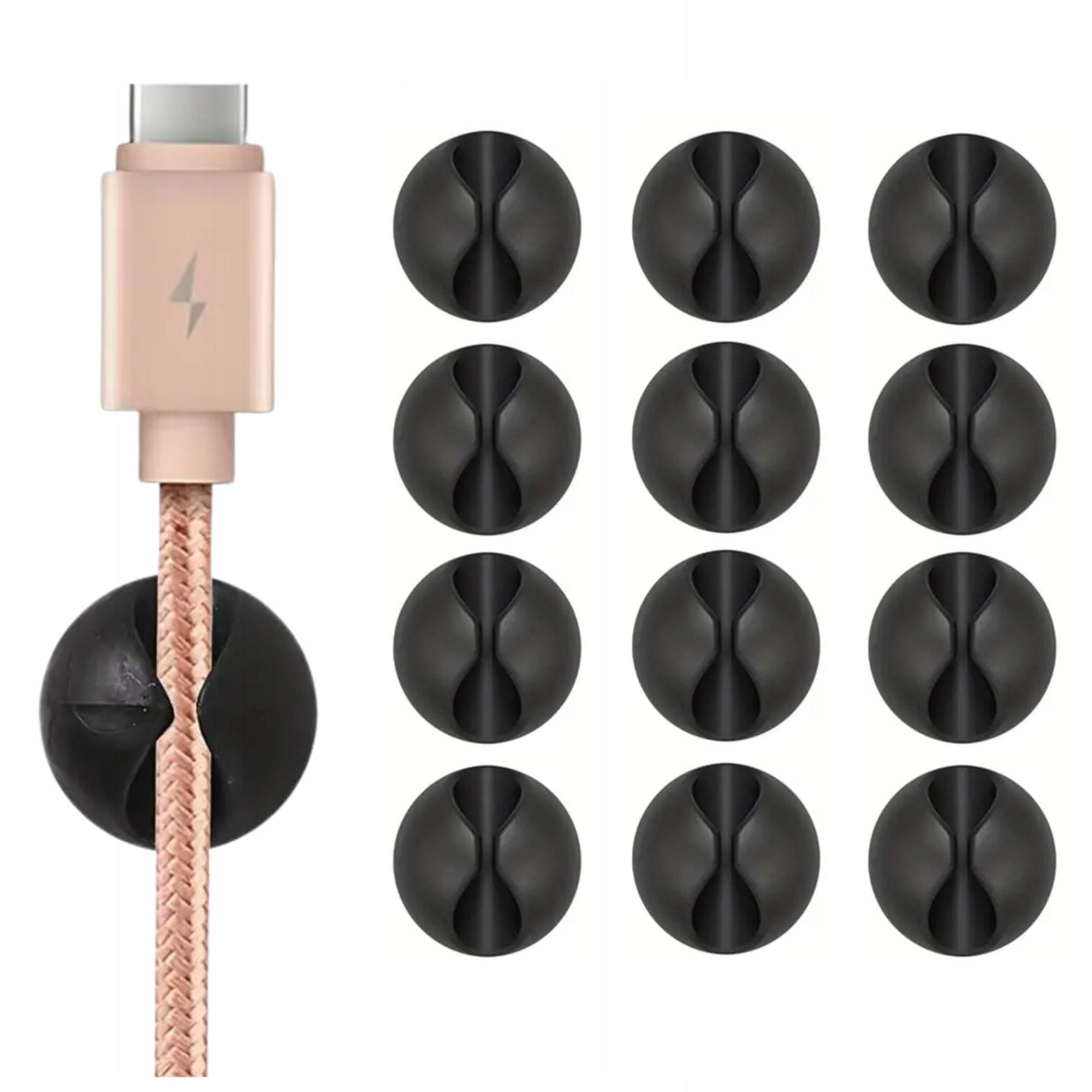 Izdelani iz prožnega materiala, ti organizatorji so trpežni, enostavni za čiščenje in vsestransko uporabni. Njihova okrogla oblika in nevtralna črna barva se diskretno zlijejo z okoljem. Komplet vsebuje 12 kosov, kar omogoča učinkovito organizacijo kablov na več mestih hkrati.