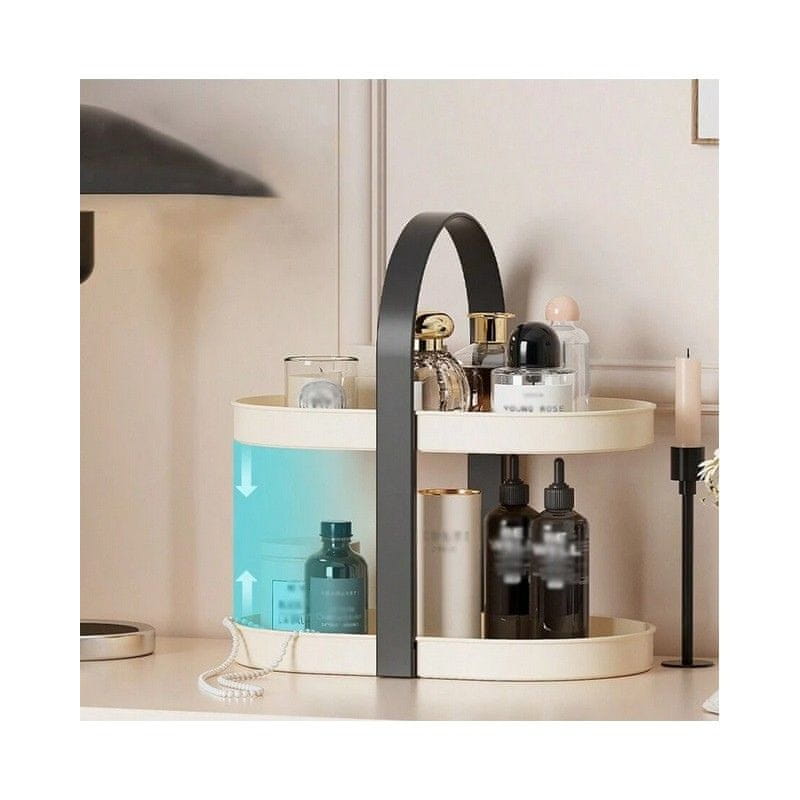 Elegantno stojalo je idealna rešitev za organizacijo vaših kozmetičnih izdelkov. Zahvaljujoč praktični dvonivojski zasnovi zagotavlja dovolj prostora za organizacijo različnih vrst kozmetike, parfumov, krem ​​ali dodatkov. Primerno je tudi za organizacijo majhnega nakita, dodatkov za lase ali drugih potrebščin.