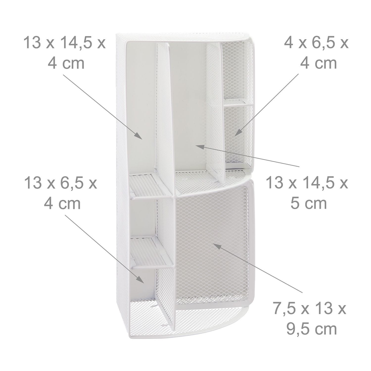 Bela kovinska namizna shramba izboljša organizacijo delovnega prostora s kombinacijo držala za pisala in namiznega organizatorja. Idealen za dom ali pisarno, saj ponuja dovolj predelkov za pisala, Celoten opis