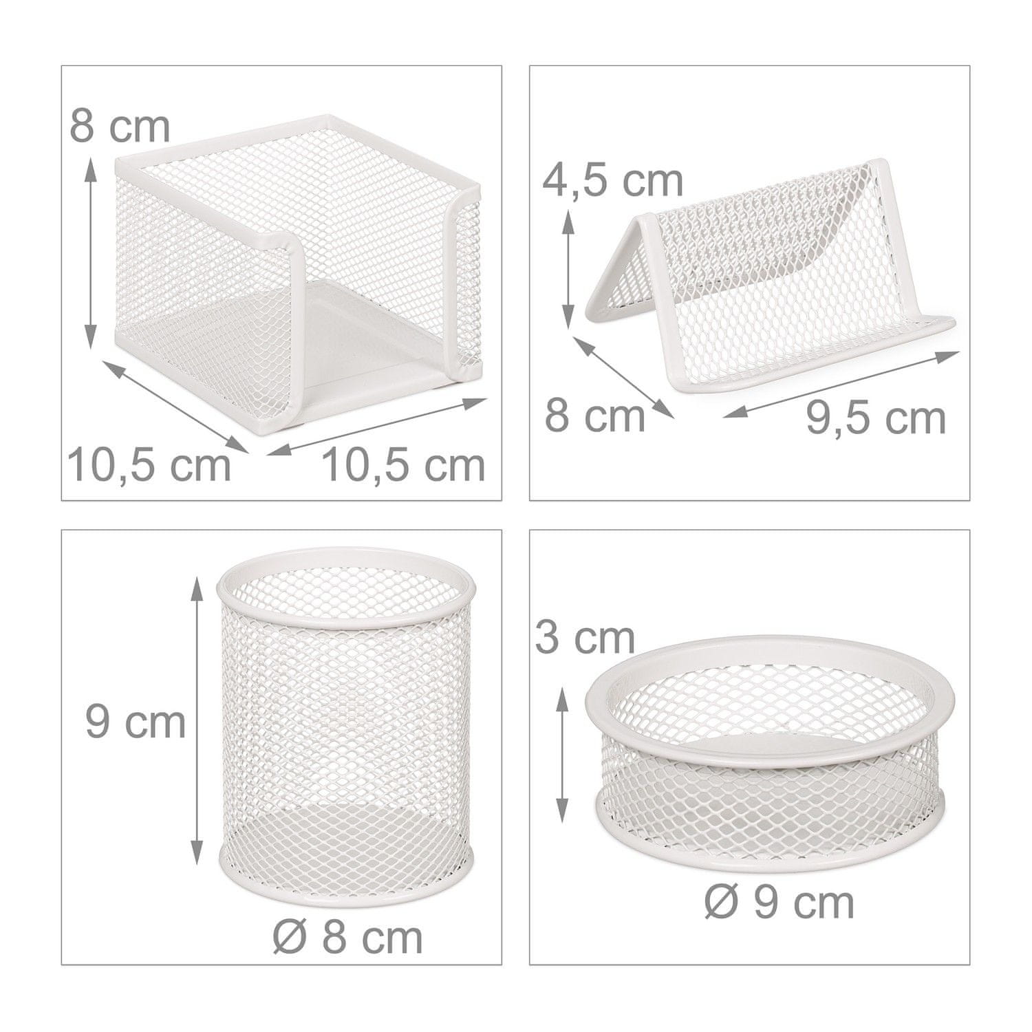 Organizirajte svoj delovni prostor s tem elegantnim belim pisarniškim kompletom z mrežasto zasnovo, ki povečuje učinkovitost in stil. Kot nalašč za lepo urejeno pisalno orodje, zapiske in dokumente.