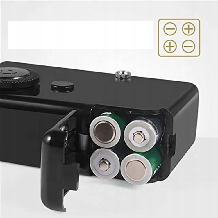 • Napajanje: Stroj napajajo štiri baterije AA (niso priložene), zato ga lahko uporabljate kjer koli, ne da bi potrebovali dostop do električne vtičnice.