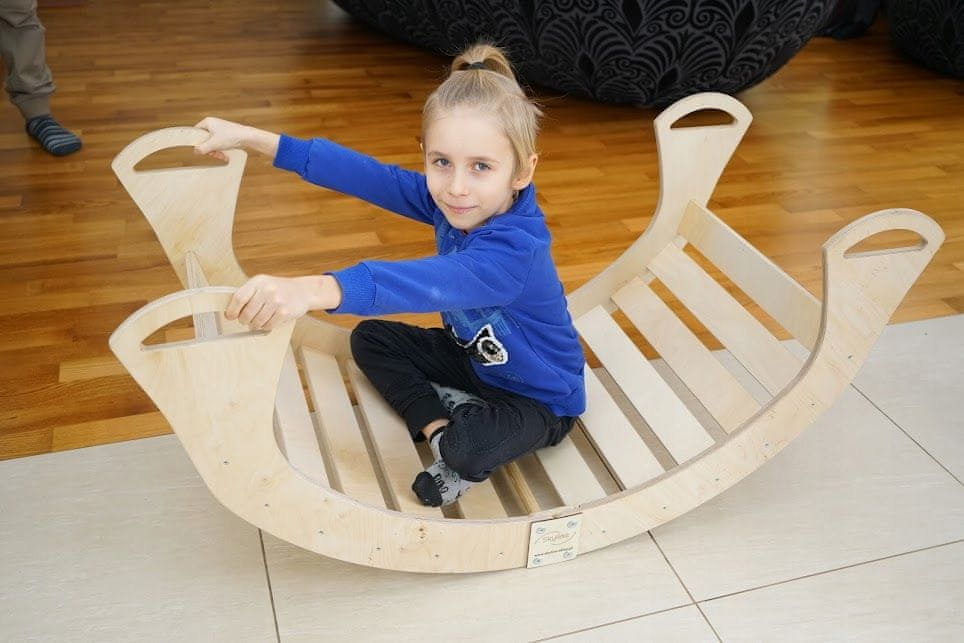 - za starejše otroke. Visokokakovostna izdelava zagotavlja udobje in užitek pri uporabi izdelka. Konstrukcija je izdelana iz najkakovostnejšega materiala: suho obdelane vezane plošče
