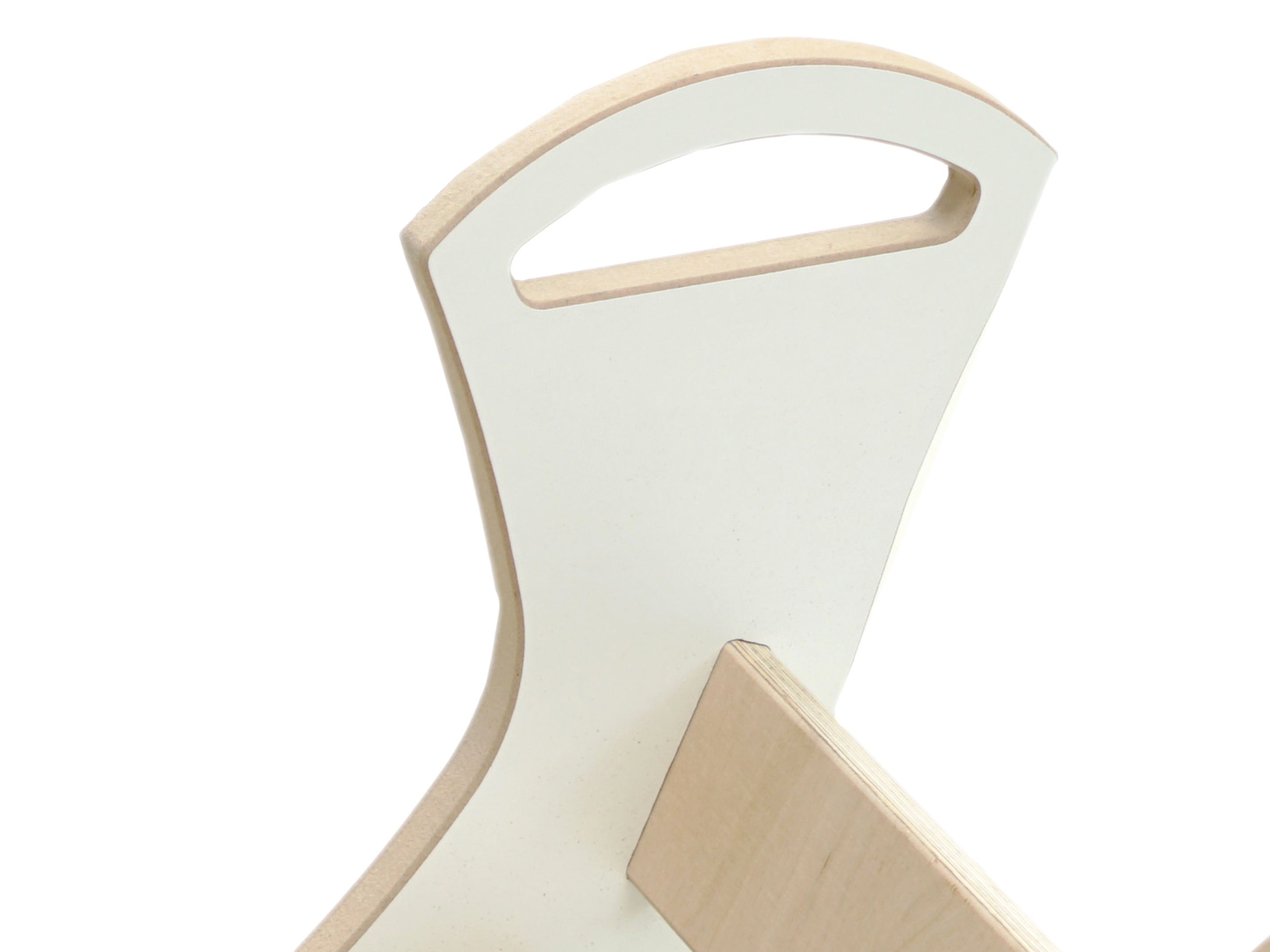 - originalno oblikovanje tekači so izdelani iz debele bele laminirane MDF plošče prečke pa so izdelane iz zelo trpežne vezane plošče breze ali bukve v
