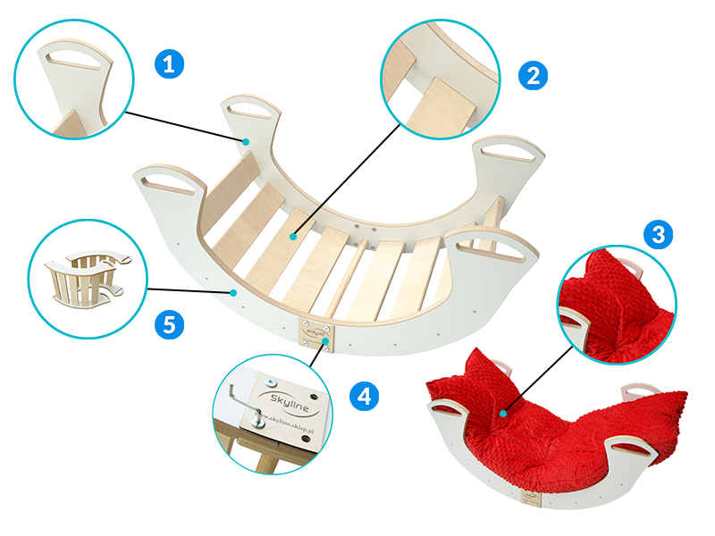- zasnova omogoča preprosto spreminjanje kombinacij in enostavno premikanje gugalnika najvišja kakovost: material je brezova ali bukova vezana plošča 15 mm,