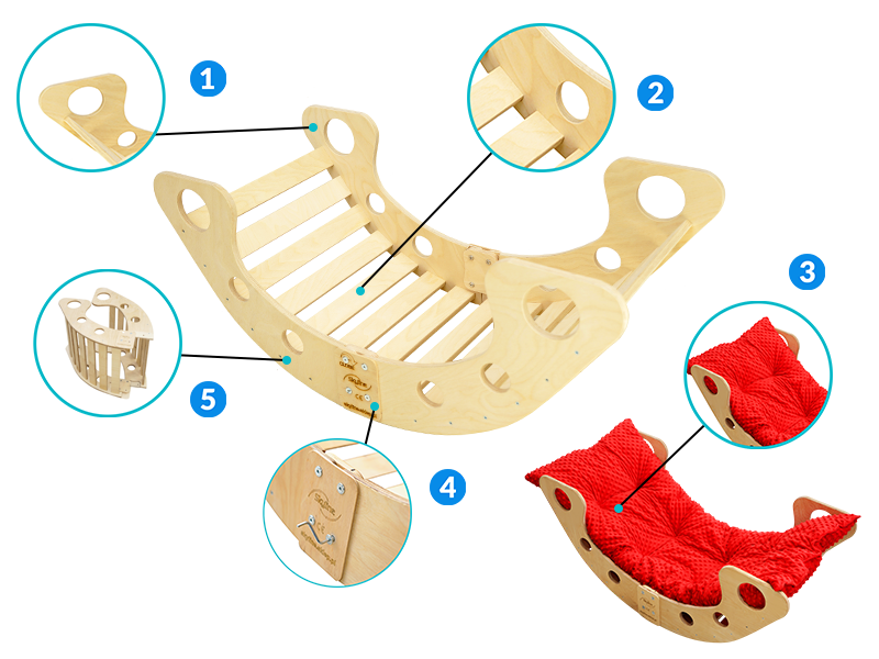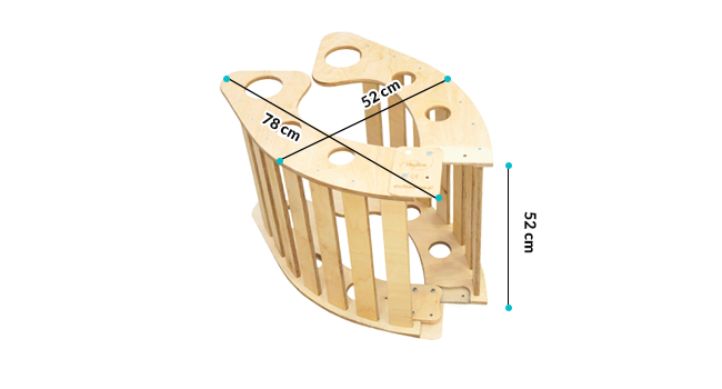 - večnamenskost : idealen kot zibelka, gugalnik, pa tudi kot miza, tobogan ali plezalna stena priročnost: lahek,