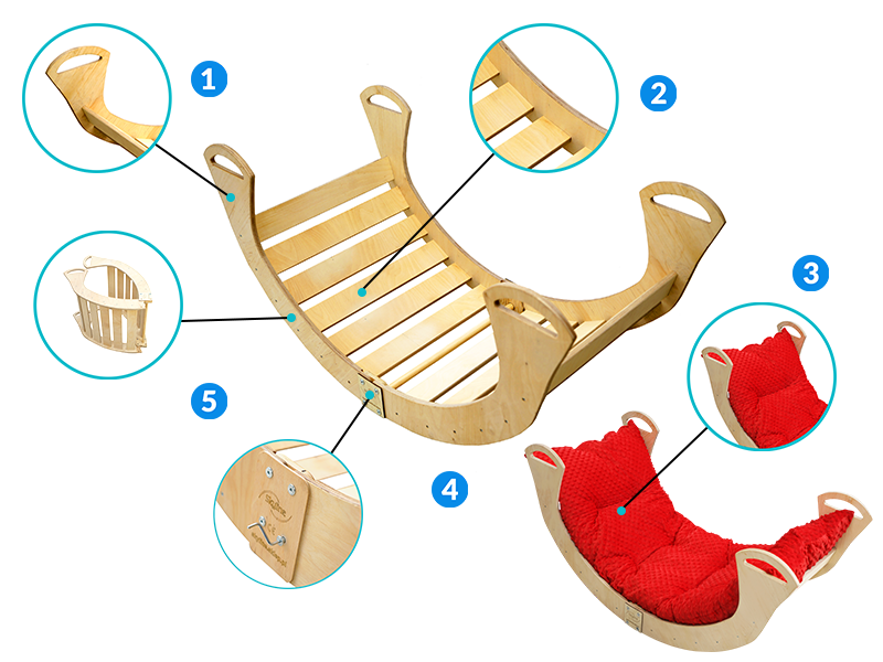 - 1. Gugalnik večnamenskost : idealen kot zibelka, gugalnik, pa tudi kot miza, tobogan ali plezalna stena priročnost: