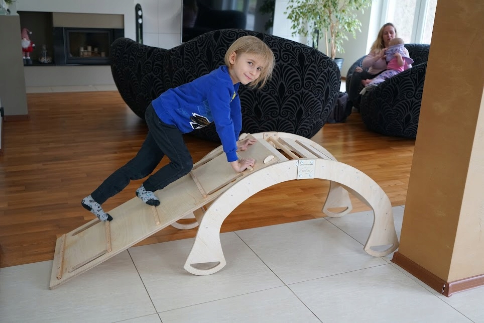 Leseni zložljivi večnamenski Montessori gugalnik za najmlajše 4 v 1: