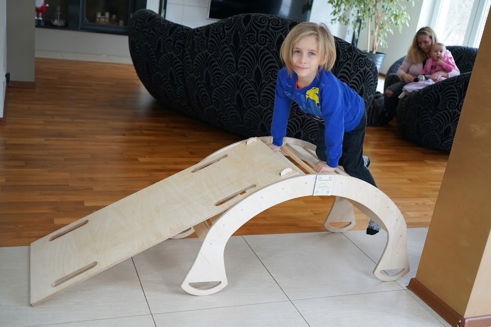 - Odlično se bo podal v kombinaciji z našim gugalnikom kot plezalna stena za najmlajše otroke, pa tudi kot tobogan in celo ravnotežna deska za starejše otroke.
