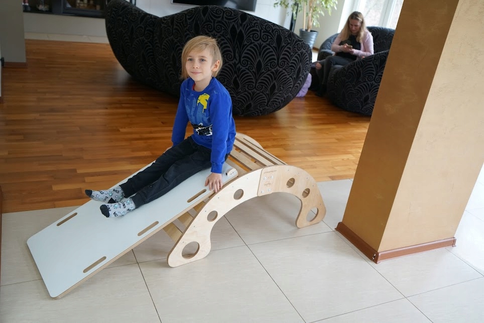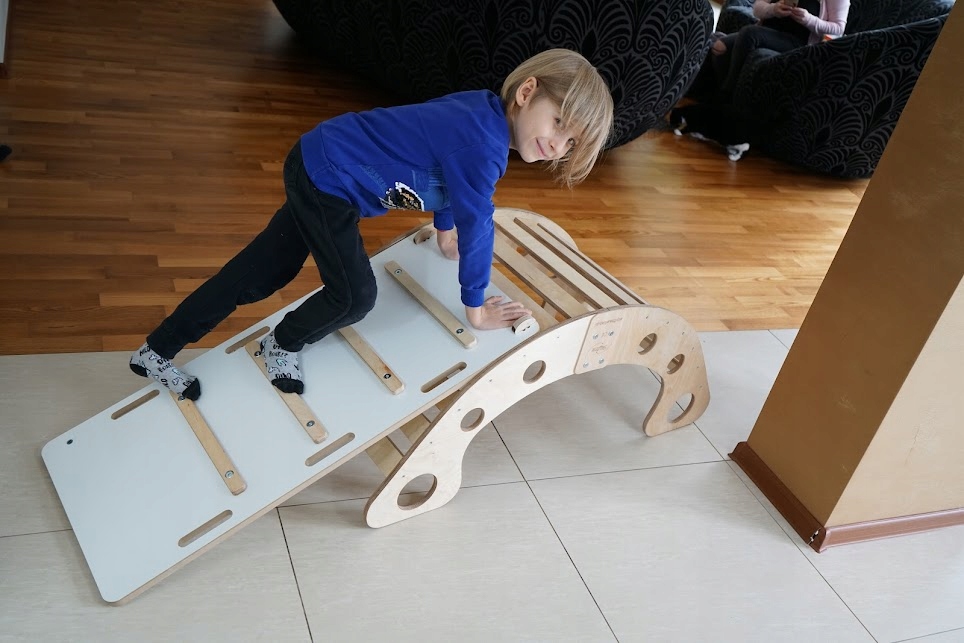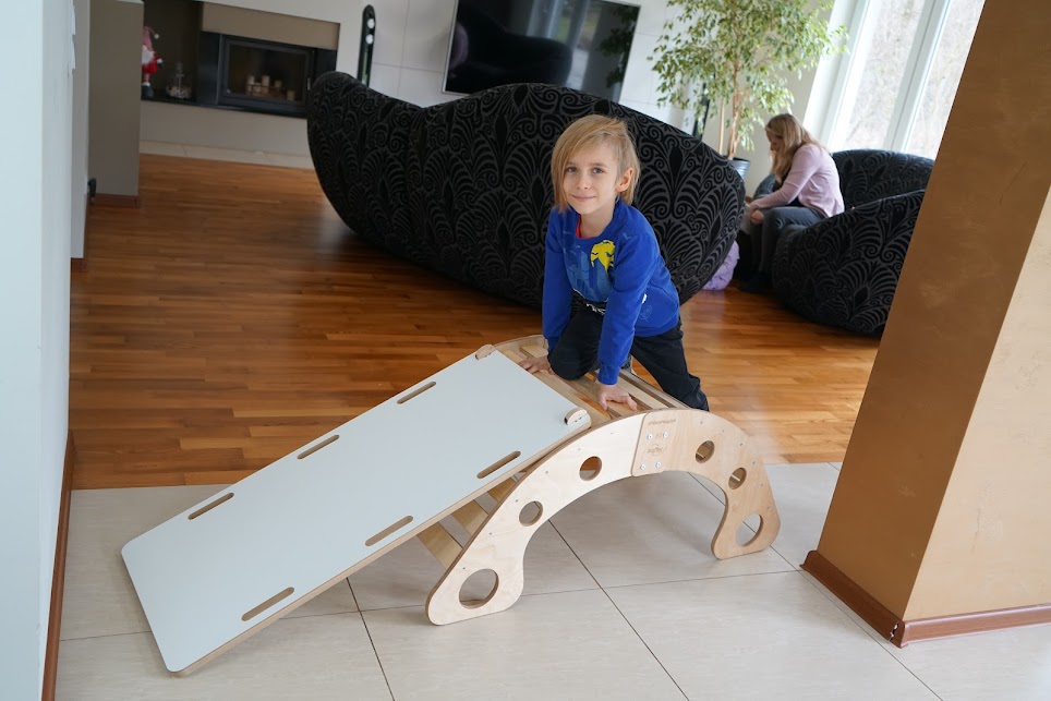- Odlično se bo podal v kombinaciji z našim gugalnikom kot plezalna stena za najmlajše otroke, pa tudi kot tobogan in celo ravnotežna deska za starejše otroke.