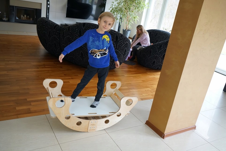 otroške trebušne in hrbtenične mišice . Učinkovito podpira ohranjanje pravilne drže in hkrati zmanjšuje tveganje za okvare drže. Poleg tega izboljšuje motorično koordinacijo , ki vpliva na del možganov, odgovoren za osredotočanje in ohranjanje ravnotežja. Gugalna ploščad je poljski izdelek, sestavljena je in pripravljena za postavitev na gugalnik. Začnite igrati s svojim otrokom takoj!