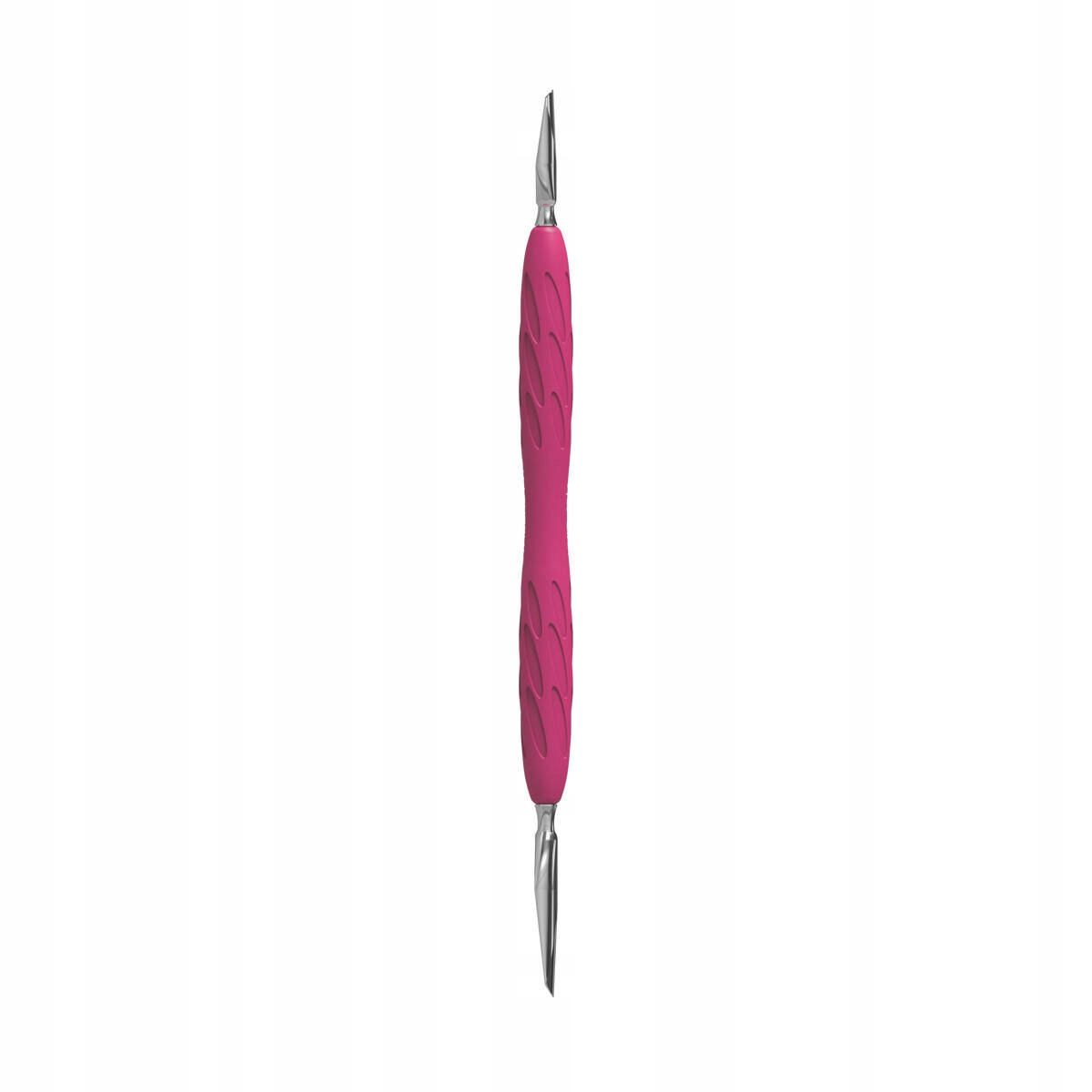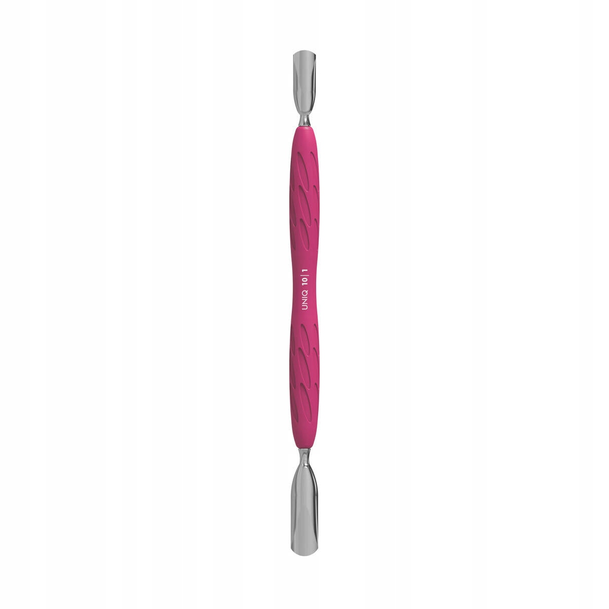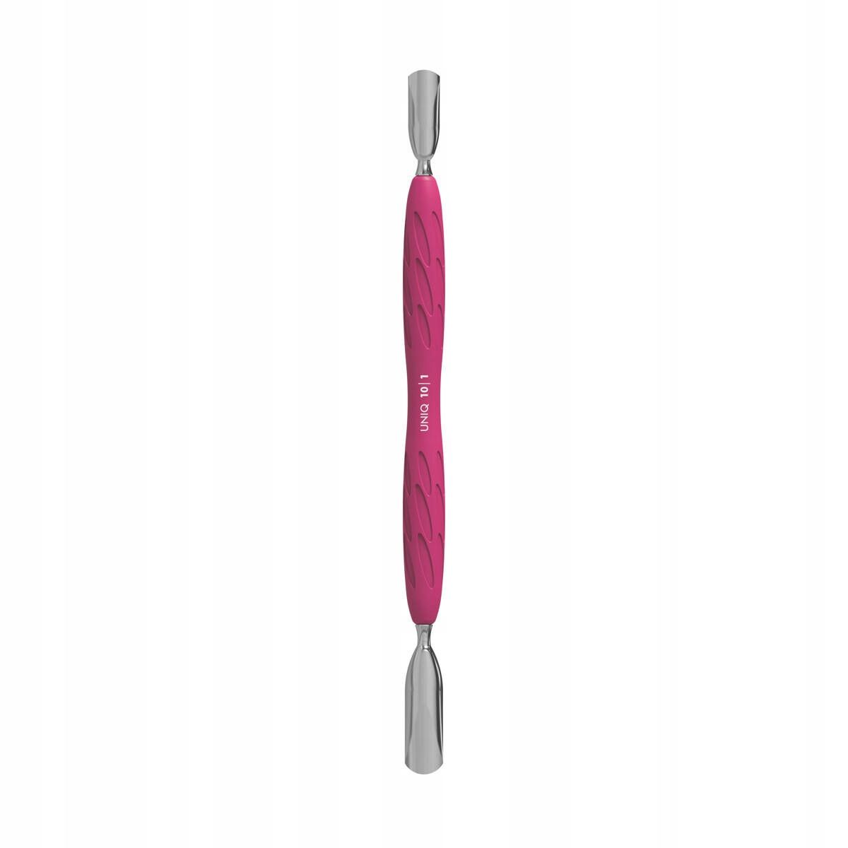 GUMMY potiskalnik za manikuro in pedikuro iz nove, edinstvene serije UNIQ združuje udobje in natančnost. Glavna značilnost GUMMY potiskalnika je silikonski ročaj, ki zagotavlja varen oprijem, kar manikerki omogoča učinkovitejše delo brez utrujenosti. Kombinacija hipoalergenega silikonskega ročaja in kovinskega dela naredi to orodje popolno utelešenje udobja in funkcionalnosti. Delovni del „potiskalnika“ je zasnovan tako, da dvigne in potisne obnohtno kožico za nadaljnjo odstranitev. Zaradi rahle ukrivljenosti se tesno prilega nohtu, ki se prilagodi njegovi obliki. Standardna velikost potiskalnika je za ozke in srednje dolge nohte.