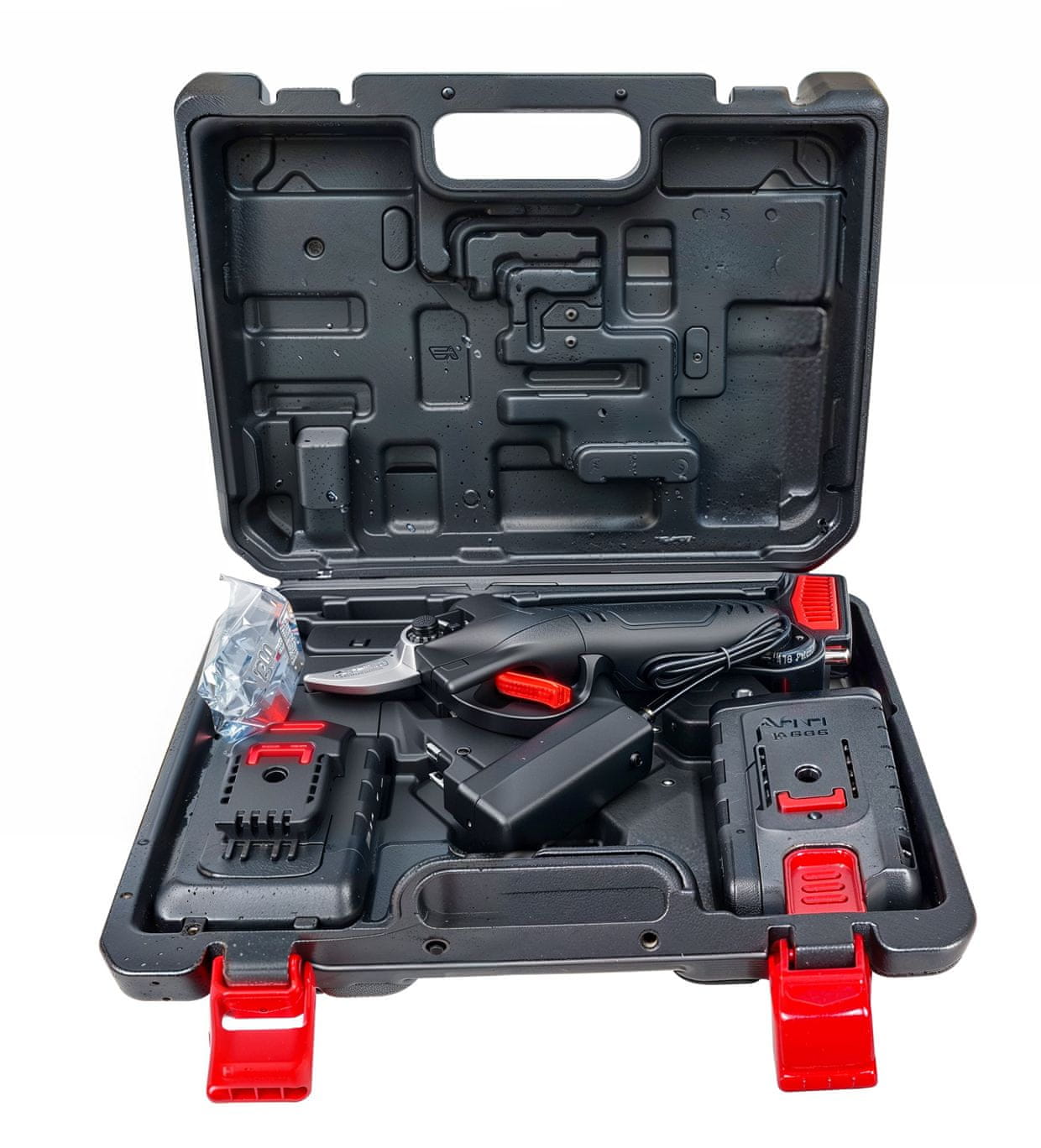 21V BATERIJSKE ELEKTRIČNE ŠKARJE ZA OBREZOVANJE – KOMPLET DVEH 1,5AH BATERIJ V KOVČKU Celotna oprema, pakirana v priročnem kovčku. Priloženi 2 zmogljivi bateriji. 21V baterijski obrezovalnik; je zanesljivo vrtno orodje, ki omogoča natančno obrezovanje rastlin. Udoben za uporabo, močan in vzdržljiv, ta obrezovalnik je neprecenljiv pomočnik za vrtnarje vseh stopenj izkušenj. Z naložbo v ta izdelek boste lahko uživali v lepem in urejenem vrtu več sezon. Predstavljamo vam edinstven baterijski obrezovalnik priznanega proizvajalca ONDRAGON. Ta profesionalni obrezovalnik je nenadomestljivo orodje za vrtnarje, kmete in vse ljubitelje vrtov, ki cenijo natančnost, udobje in vzdržljivost. Zahvaljujoč uporabi najnovejših tehnologij in visokokakovostnih materialov obrezovalnik ONDRAGON 36V zagotavlja učinkovito obrezovanje rastlin v vseh pogojih. Opremljen z 36V motorjem lahko naš obrezovalnik obdeluje različne vrste vej, kar zagotavlja hitro in natančno rezanje. Ena najpomembnejših prednosti tega obrezovalnika je njegova ergonomska zasnova in udoben ročaj, ki zagotavlja udobje med delom. Poleg tega je zaradi visokozmogljive baterije enostaven za uporabo brez potrebe po kablih in napajalnikih. OPREMA: Akumulatorske škarje 2× polnilnik baterij Steklenička olja Ključi za uporabo Navodila