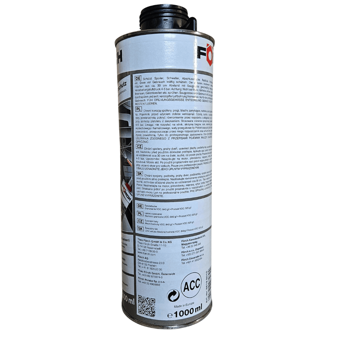 FORCH L260 Tesnilna masa za podvozje je napreden zaščitni izdelek, ki ustvari trpežen in fleksibilen premaz na površinah podvozja vozila. Zagotavlja zanesljivo zaščito pred korozijo, mehanskimi poškodbami in negativnimi vplivi zunanjih dejavnikov. Odporna je na vodo, cestno sol in kamenčke ter je popolnoma učinkovita v težkih cestnih razmerah in ščiti kovinske komponente vozila.
