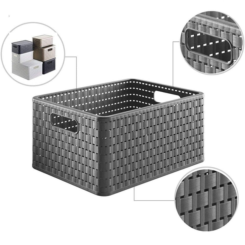 Plastična škatla za shranjevanje A4 v slogu uretanskega prepleta. Široka uporaba v celotnem gospodinjstvu. Sodobna zasnova in kakovostna izdelava. Kapaciteta škatle 18L. Ročaji za enostavno prenašanje.