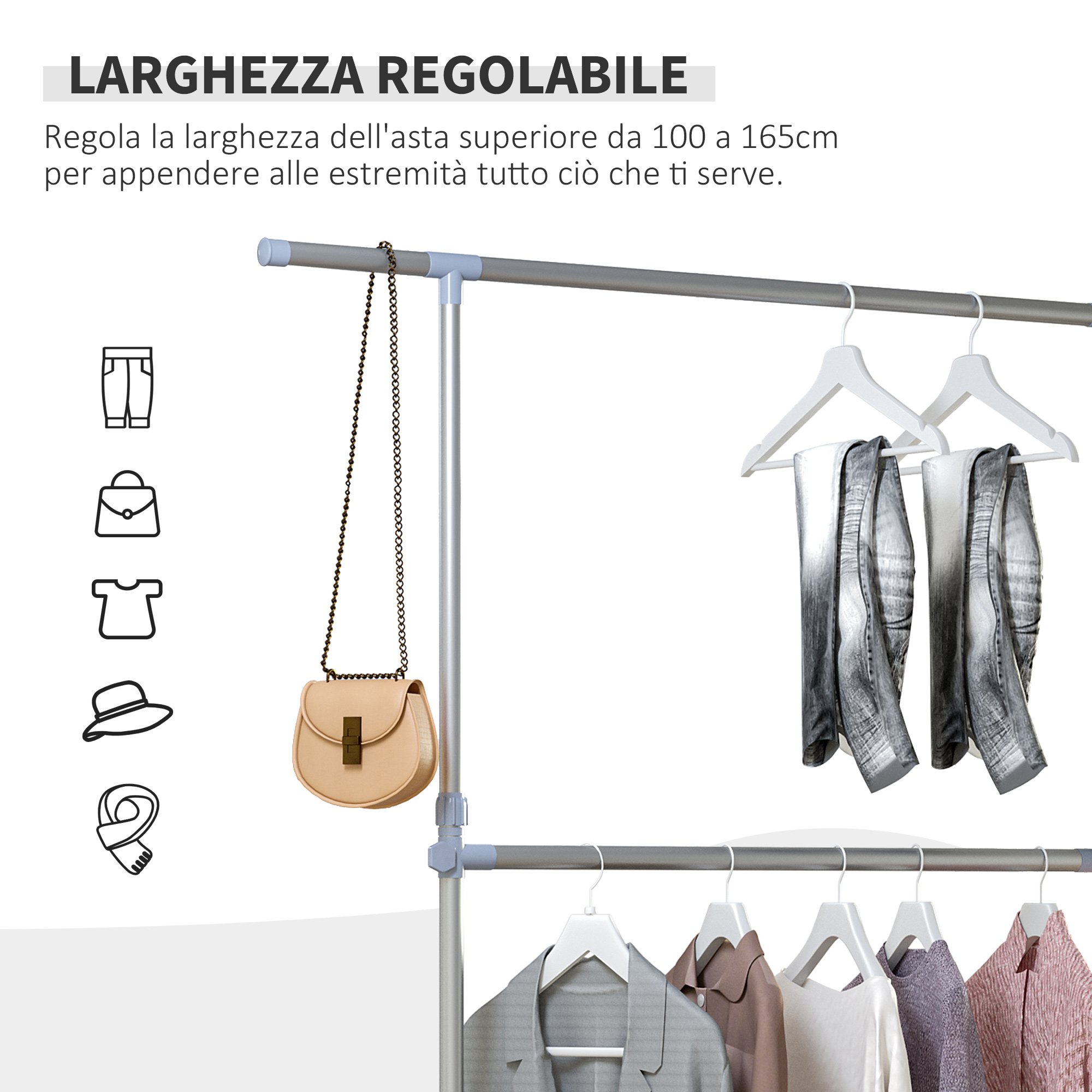 HOMCOM HOMCOM stojalo za oblačila z nastavljivo višino in podaljškom, 4 vrtljiva kolesca, iz nerjavečega jekla in ABS, 165x48x180cm