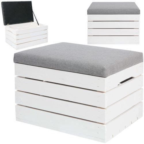 Leseni puf – škatla združuje praktično uporabo z eleganco oblikovanja, kar ga dela idealen dodatek v vsakem interierju. Zaradi zložljivega, oblazinjenega sedeža in prostornega shranjevanja za različne potrebe vam pomaga prihraniti prostor v gospodinjstvu. Odlično se prilega v spalnico, dnevno sobo, predsobo ali otroško sobo, kot tudi kot opora za noge ali mizica na balkonu. Puf je izdelan iz kakovostnega smrekovega lesa in visoko fleksibilne pene T-25, kar zagotavlja njegovo odpornost in udobje.
