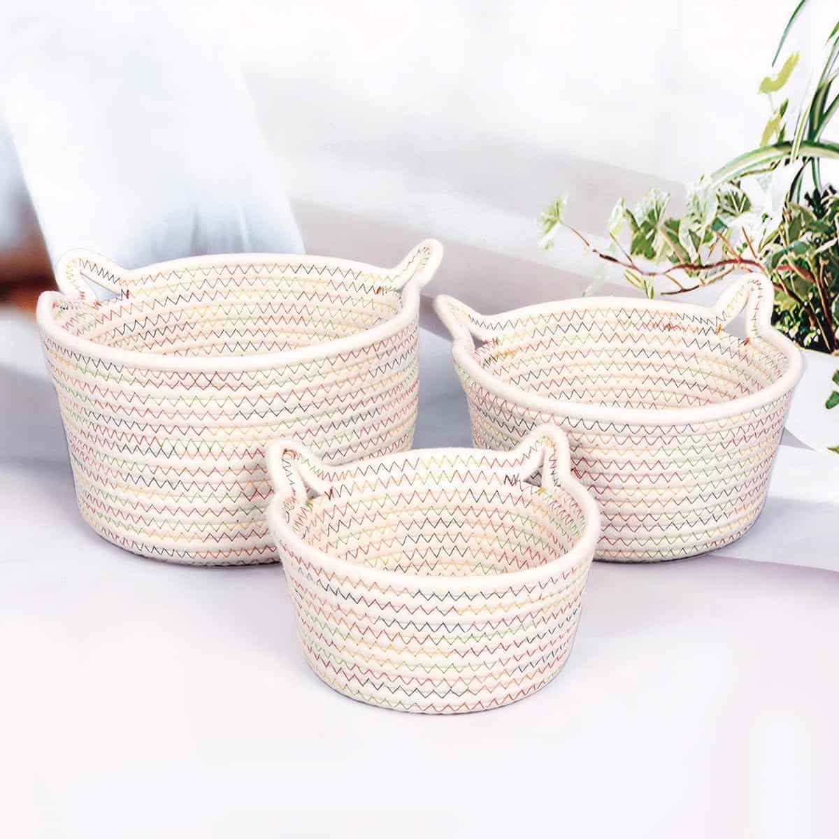 Set 3 dekorativnih košar iz bombažne vrvi v obliki mačjih ušes