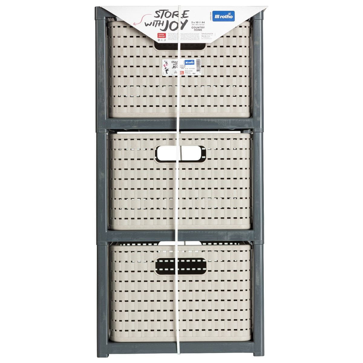 Rotho Country predalnik, plastičen, 3-nadstropni, 87 l, bež