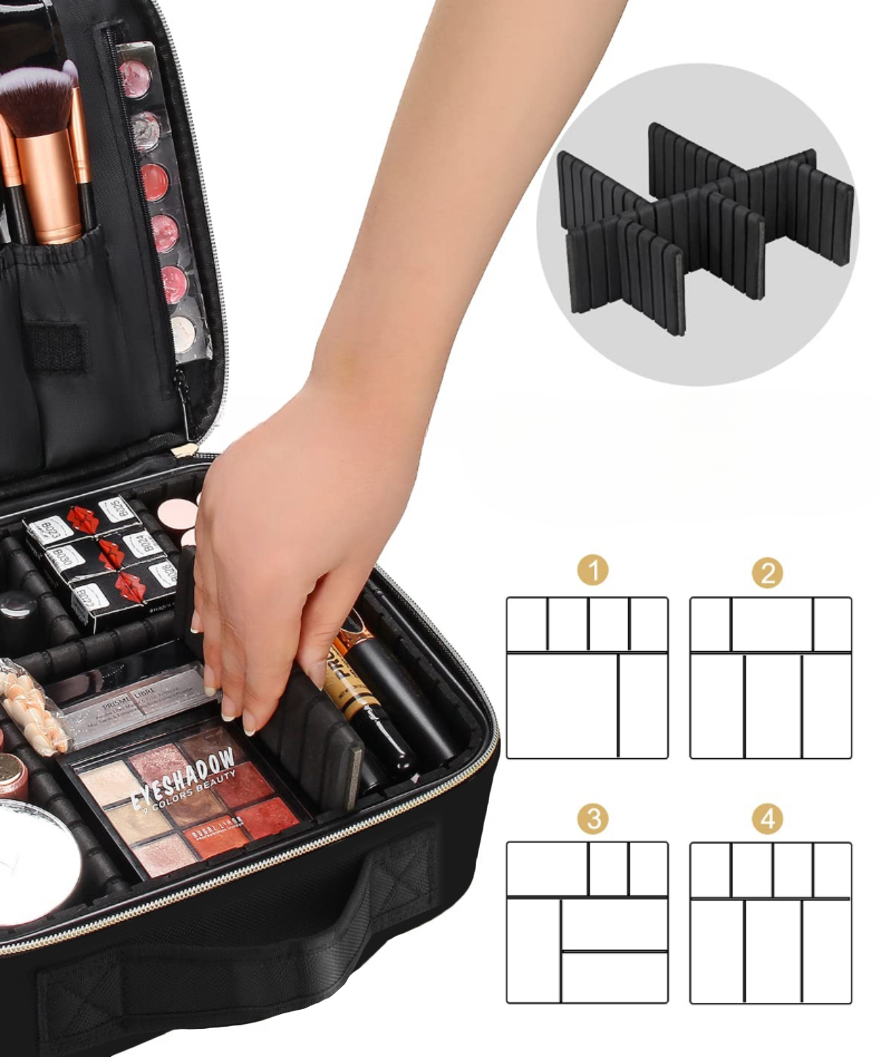 Veliko število nastavljivih predalov in žepov vam omogoča ločevanje kozmetike, zaradi česar je ohranjanje reda izjemno enostavno!