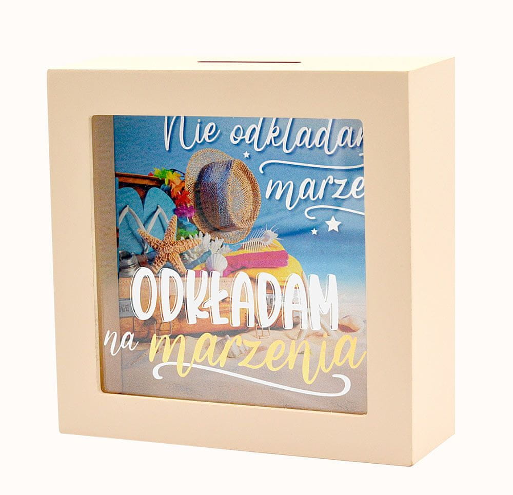 Ta hranilnik SKARBBOXY je popolna in edinstvena ideja za darilo, ki se odlično poda v vsako notranjost, hkrati pa služi kot čudovita dekoracija. Ta hranilnik je izdelan iz masivne MDF plošče in ima na vrhu posebno režo za vstavljanje kovancev in bankovcev.