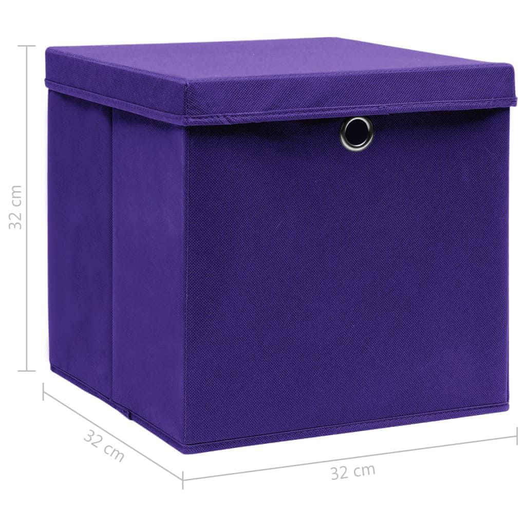 shumee Škatle za shranjevanje s pokrovi 4 kosi vijolične 32x32x32 cm