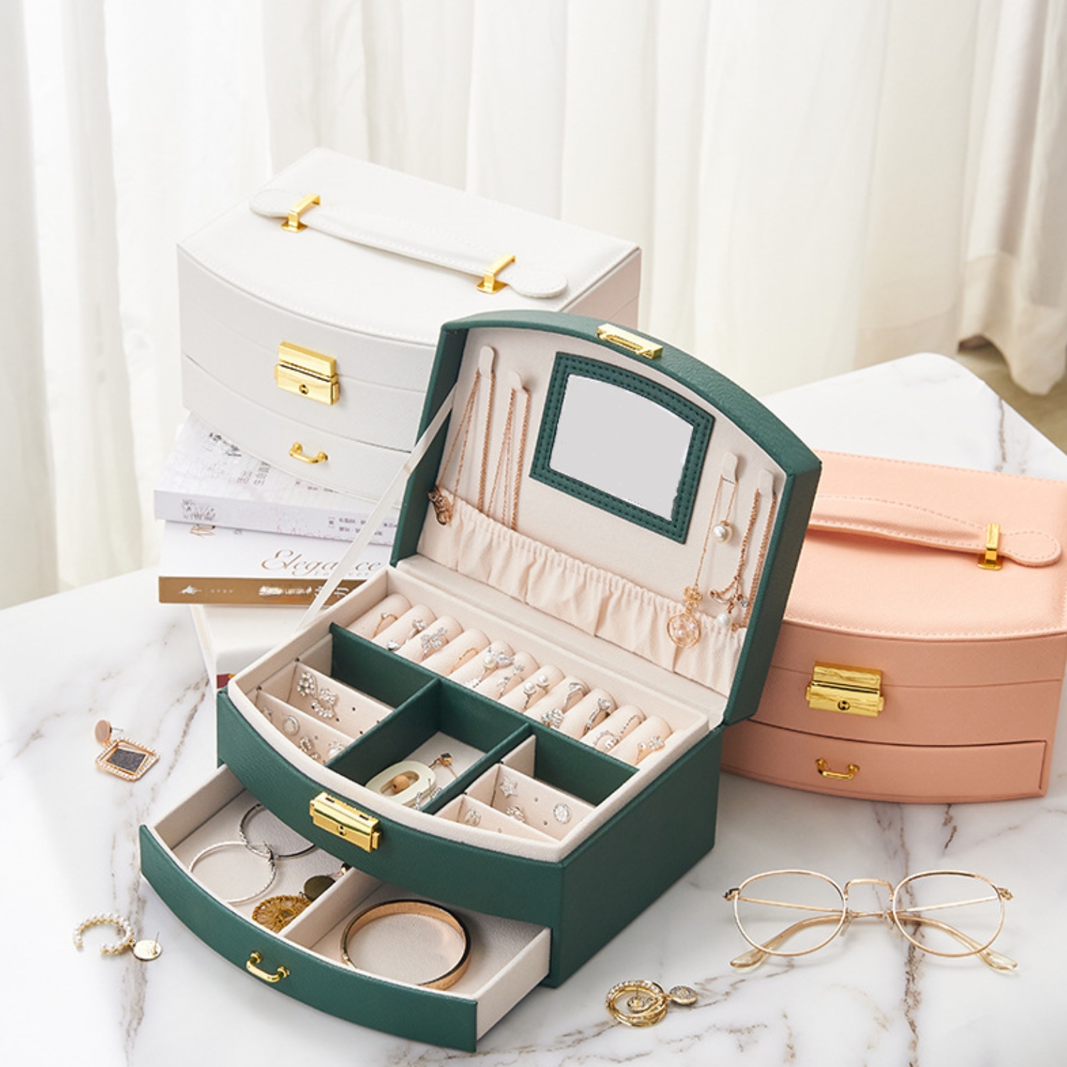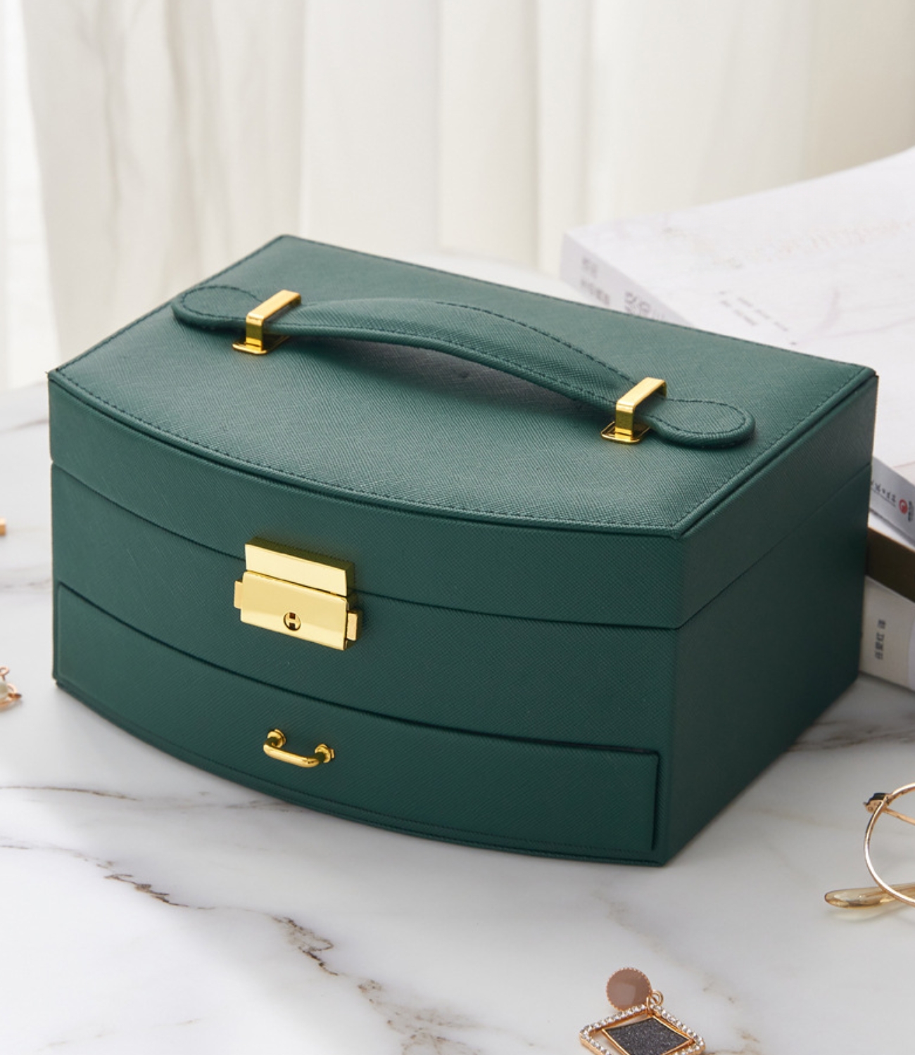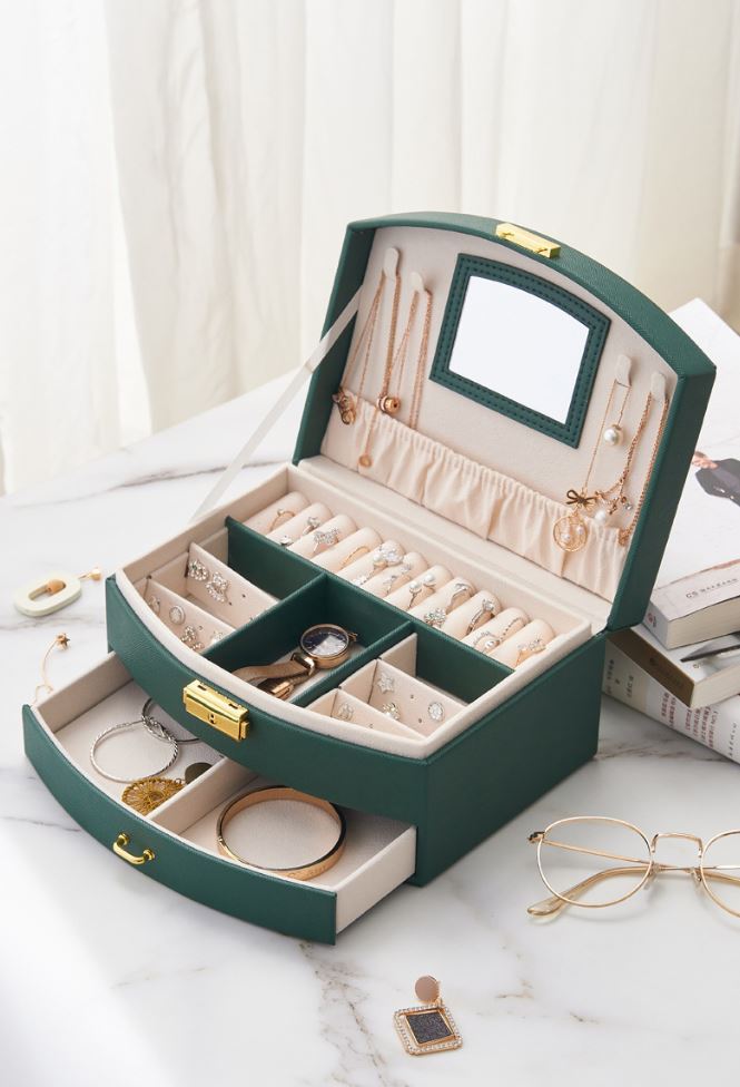 ✨ ŠKATLA ZA ORGANIZATOR NAKITA STEKLENIČNO ZELENA