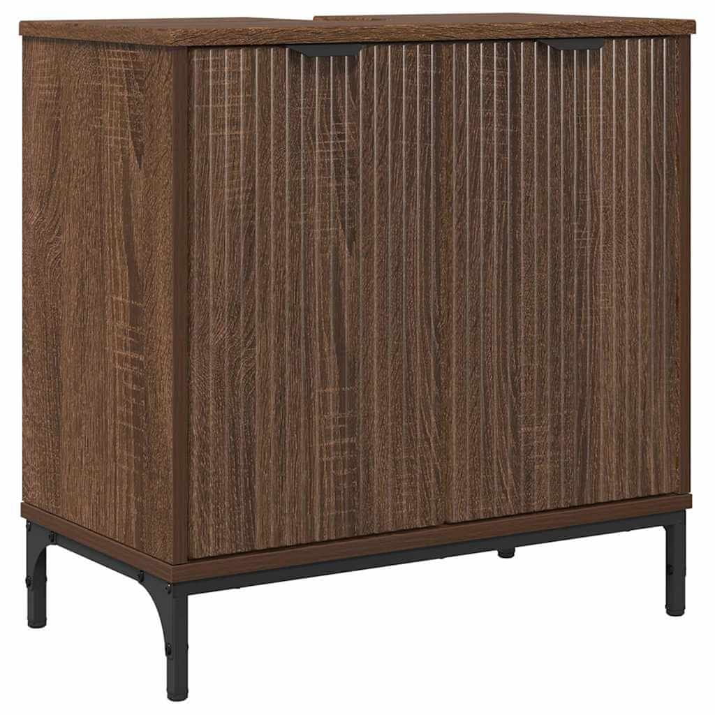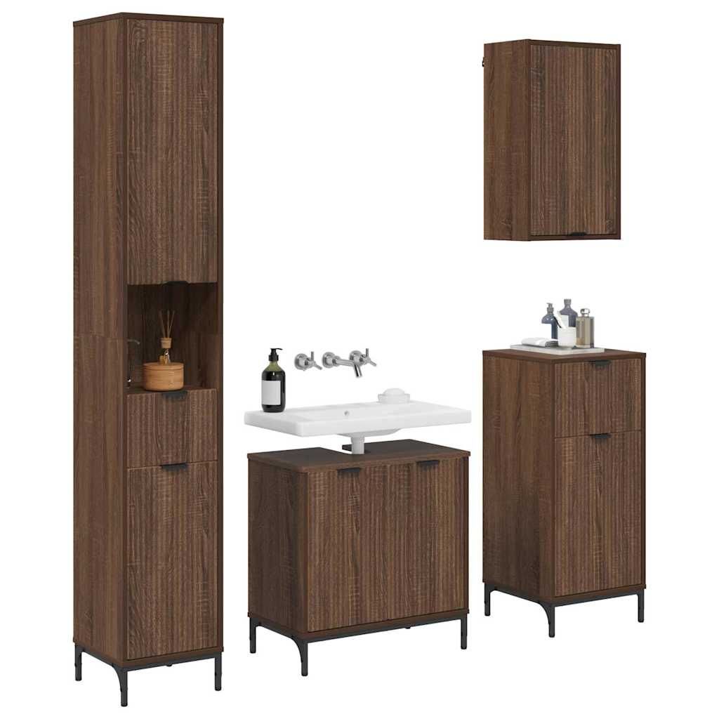 Vidaxl Komplet pohištva za kopalnico Rjav hrast Inženirski les, kovina