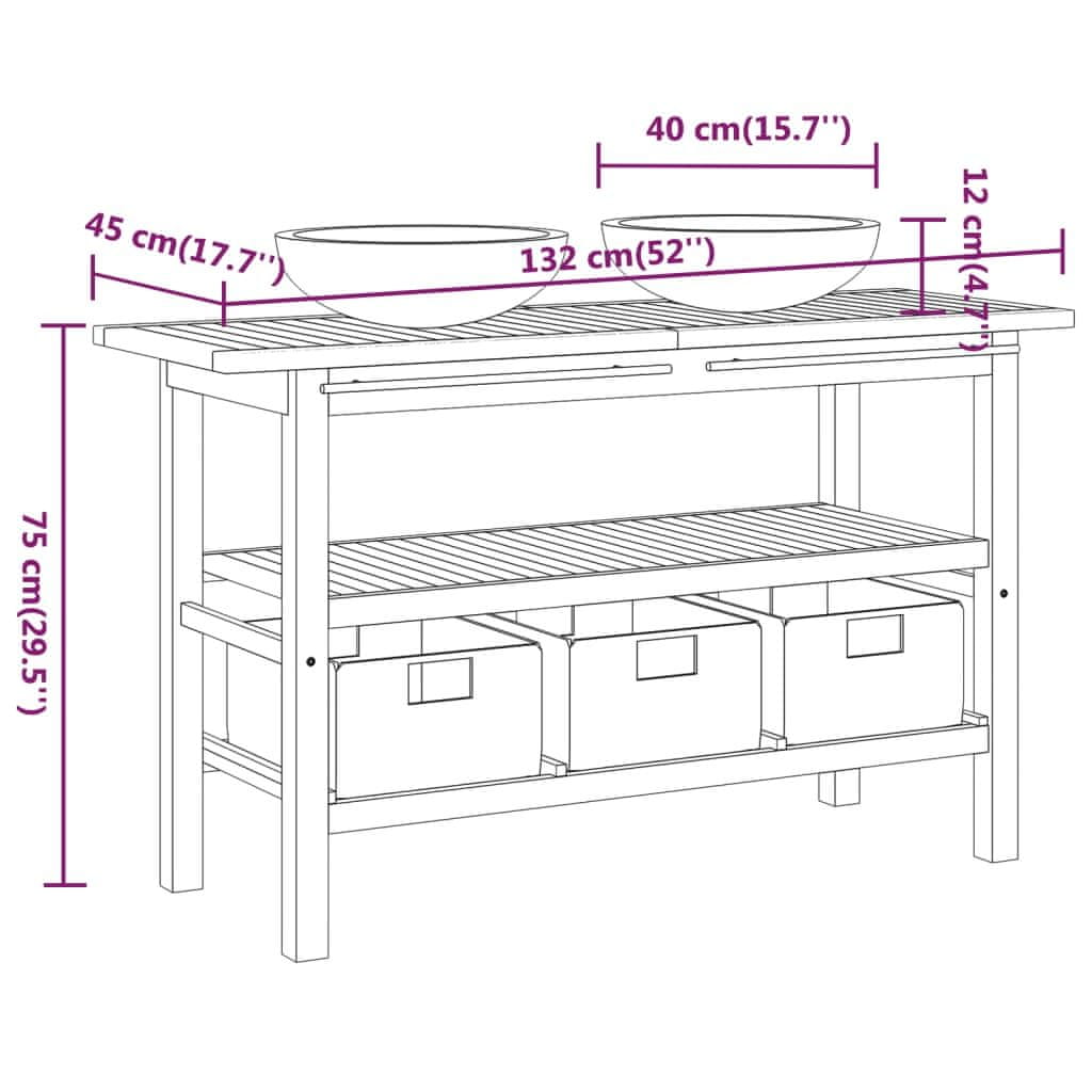 Omarica je izdelana iz trdne tikovine, ki je dovolj trpežna in čvrsta, da lahko na površino postavite umivalnik in druge kopalniške dodatke. Kozmetična omarica ima držalo za obešanje brisač ali oblačil. Ima tudi štiri podporne noge za zagotavljanje stabilnosti in suhosti nad tlemi. Osupljiv umivalnik je uporabniku prijazen za vsakodnevno uporabo in je čudovit okras za vaš bivalni prostor. 3 spodnje košare poskrbijo, da bo vaša kopalnica pospravljena in urejena. Umivalnik, ki je v celoti izdelan iz elegantnega marmorja, je zelo robusten in eleganten. Poleg tega je umivalnik zelo enostaven za čiščenje. Omarica se popolnoma poda pod vaš umivalnik ter poskrbi, da je prostor v kopalnici dobro izkoriščen.