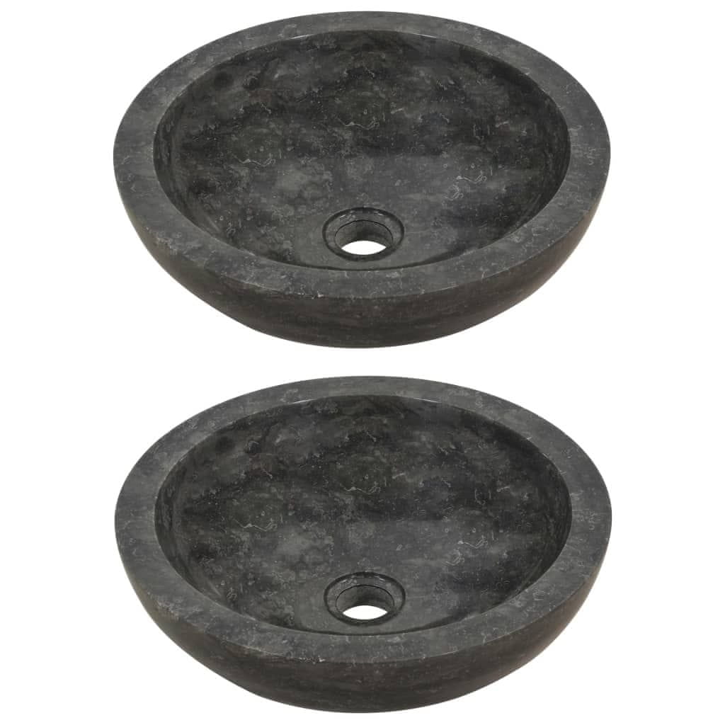Vidaxl Kopalniška omarica iz tikovine z umivalnikoma črn marmor