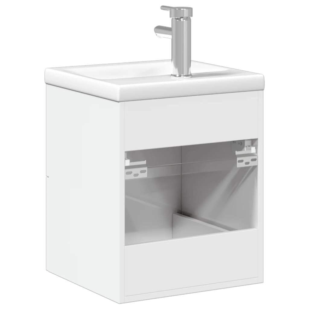 Vidaxl Kopalniška omarica z umivalnikom visok sijaj bela