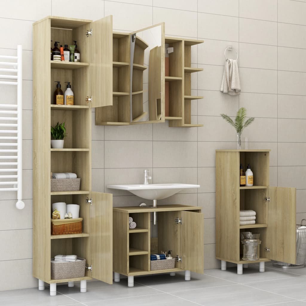 Vidaxl Kopalniška omarica z ogledalom sonoma hrast 80x20,5x64 cm