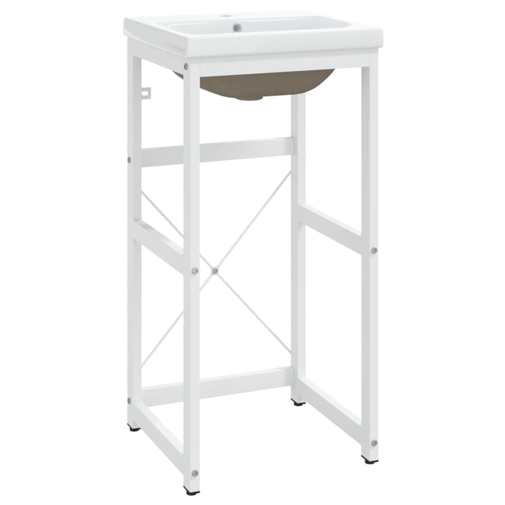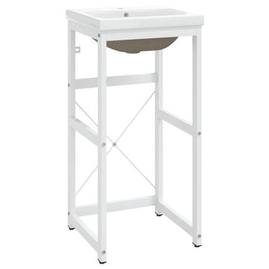 Vidaxl Okvir umivalnika z vgradnim umivalnikom belo železo