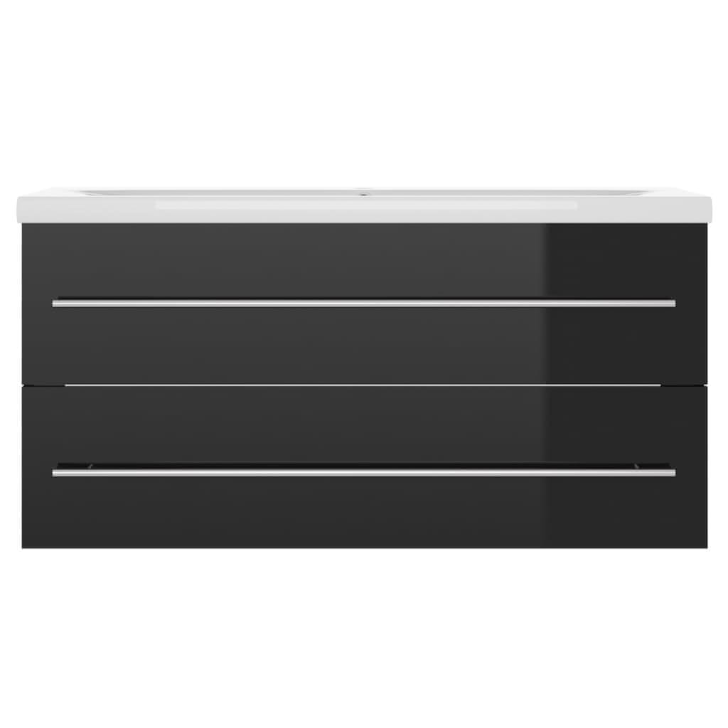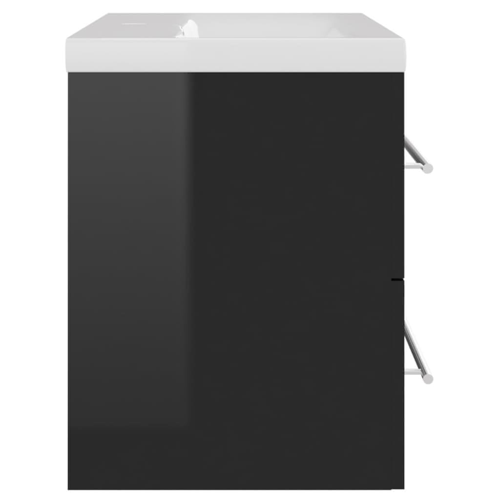 Vidaxl Omarica z umivalnikom visok sijaj črna iverna plošča
