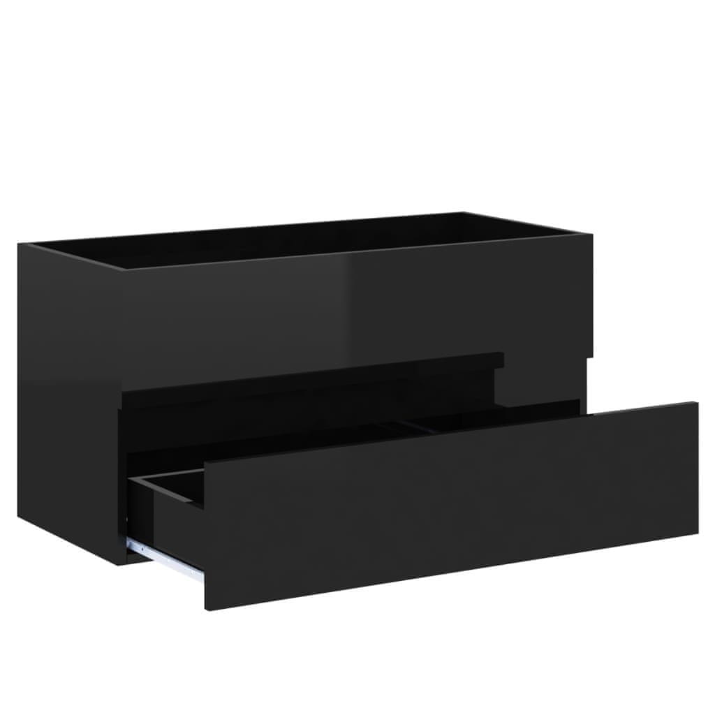 Vidaxl Omarica za umivalnik z vgradnim umivalnikom visok sijaj črna