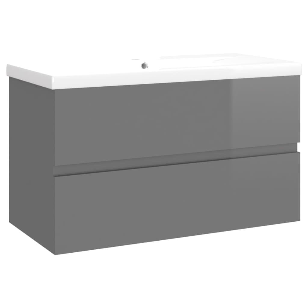 Vidaxl Omarica za umivalnik z vgradnim umivalnikom visok sijaj siva