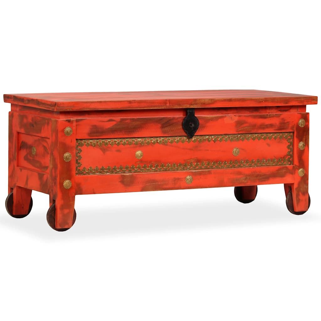 Vidaxl Skrinja za shranjevanje trden mangov les 101x39x42 cm rdeča