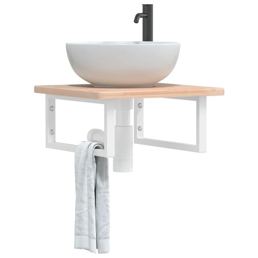 • Trpežna in dolgotrajna: Ta polica za umivalnik združuje jekleno konstrukcijo in zgornji del iz trdnega hrastovega lesa, zato je robustna, stabilna in d