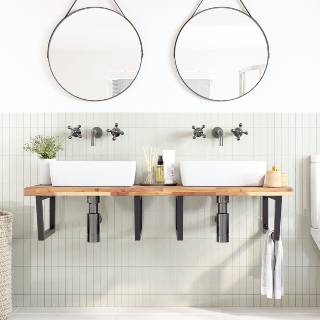 • Trpežna in dolgotrajna: Ta polica za umivalnik združuje jekleno konstrukcijo in zgornji del iz trdnega akacijevega lesa, zato je robustna, stabilna in dolgotrajna.