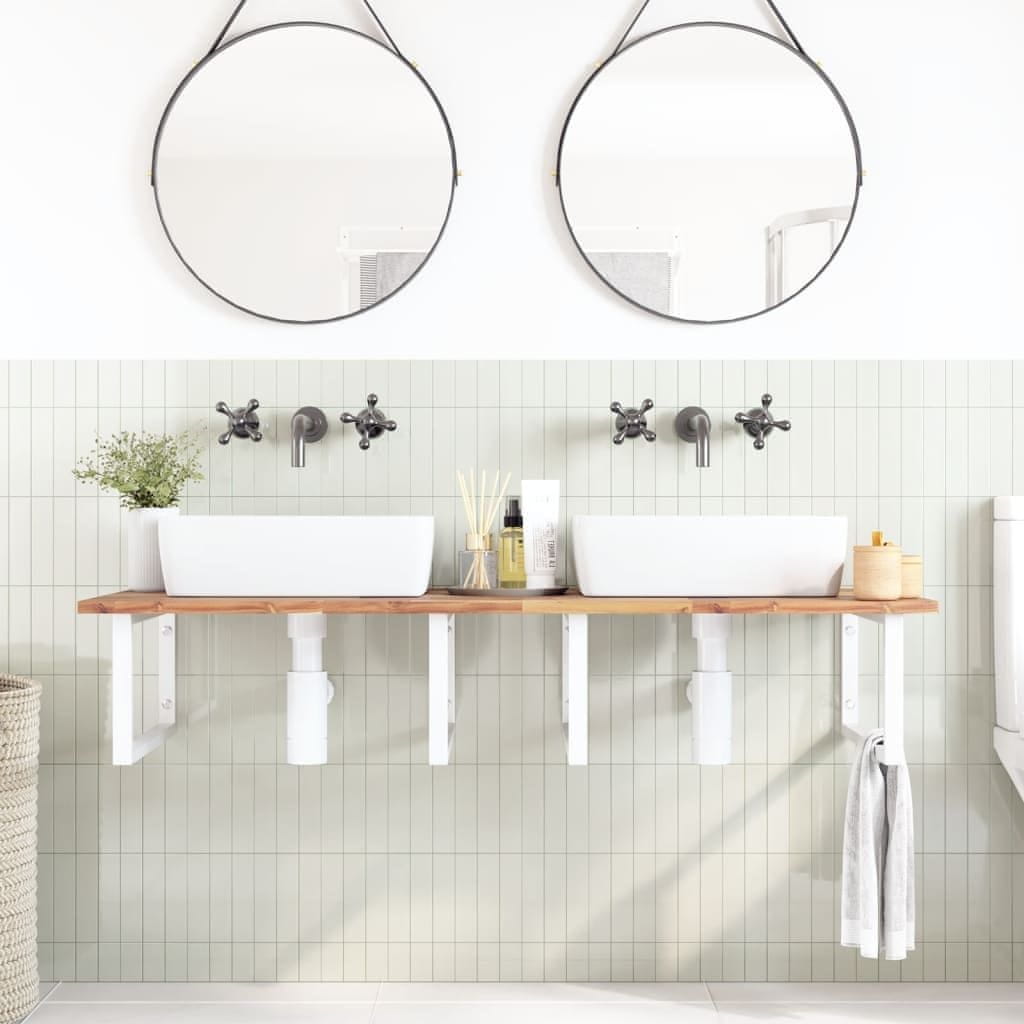 • Trpežna in dolgotrajna: Ta polica za umivalnik združuje jekleno konstrukcijo in zgornji del iz trdnega akacijevega lesa, zato je robustna, stabilna in d